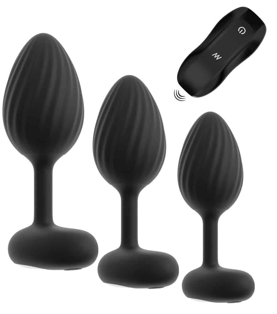 Set med 3 vibrerande analpluggar och smidig fjärrkontroll.